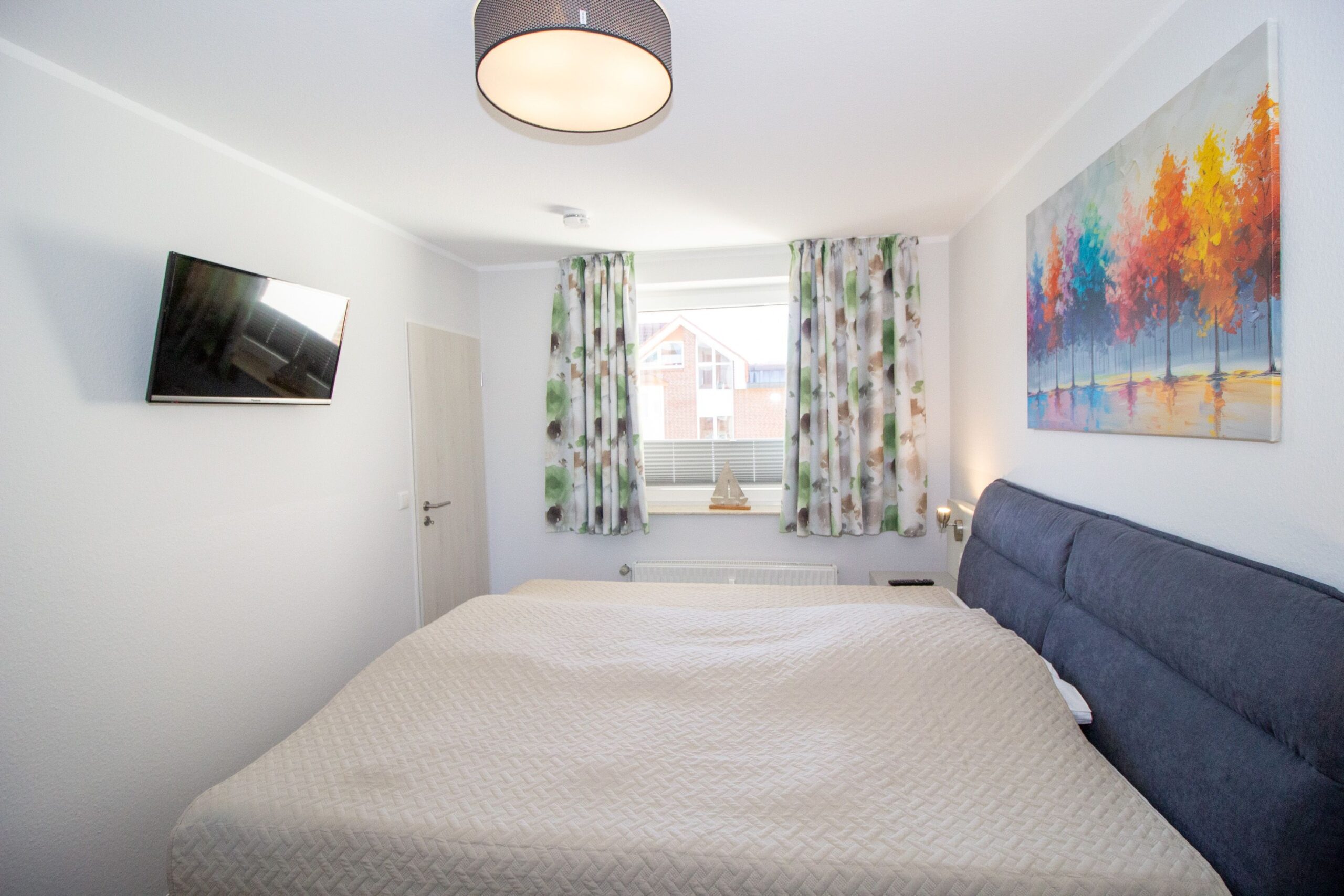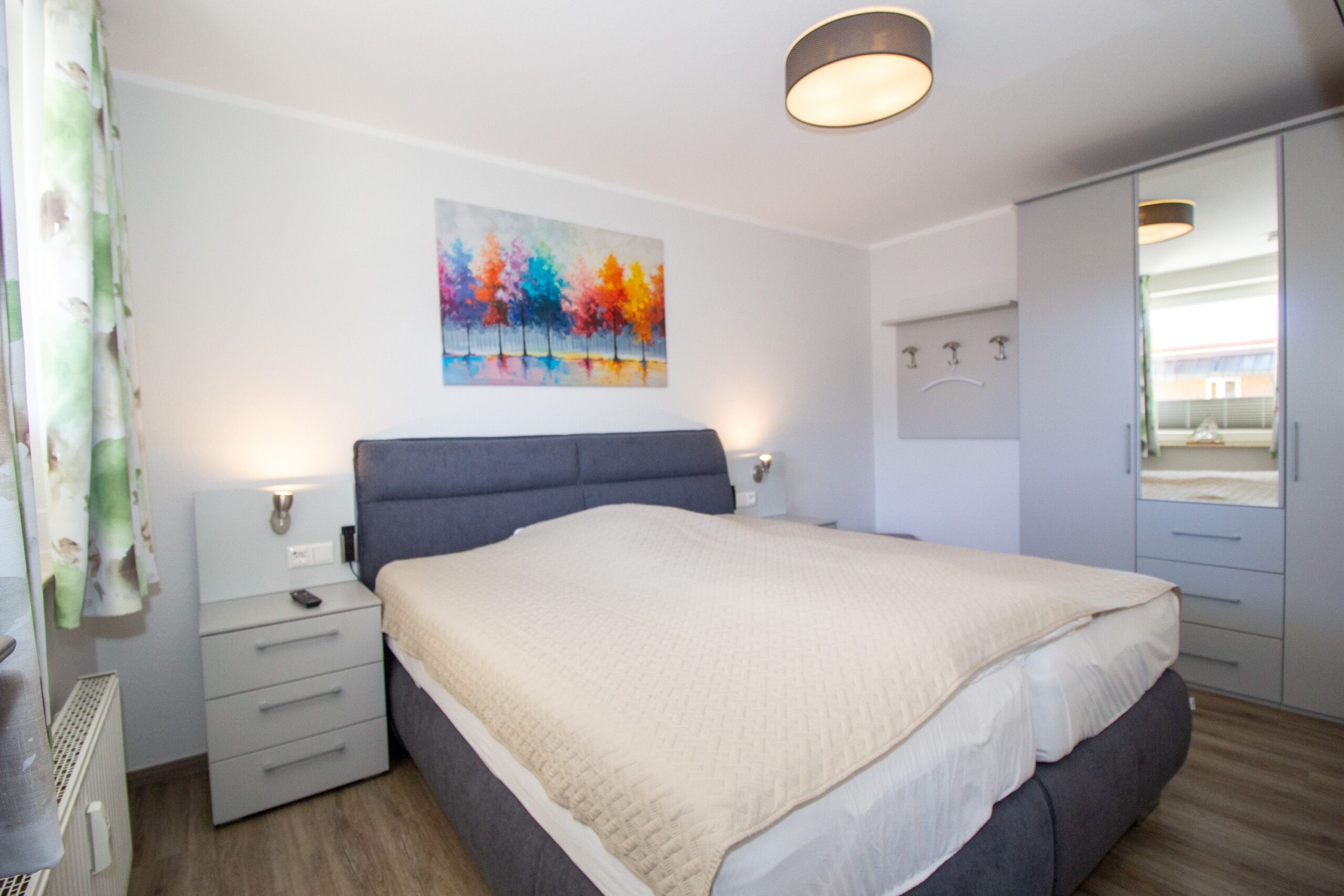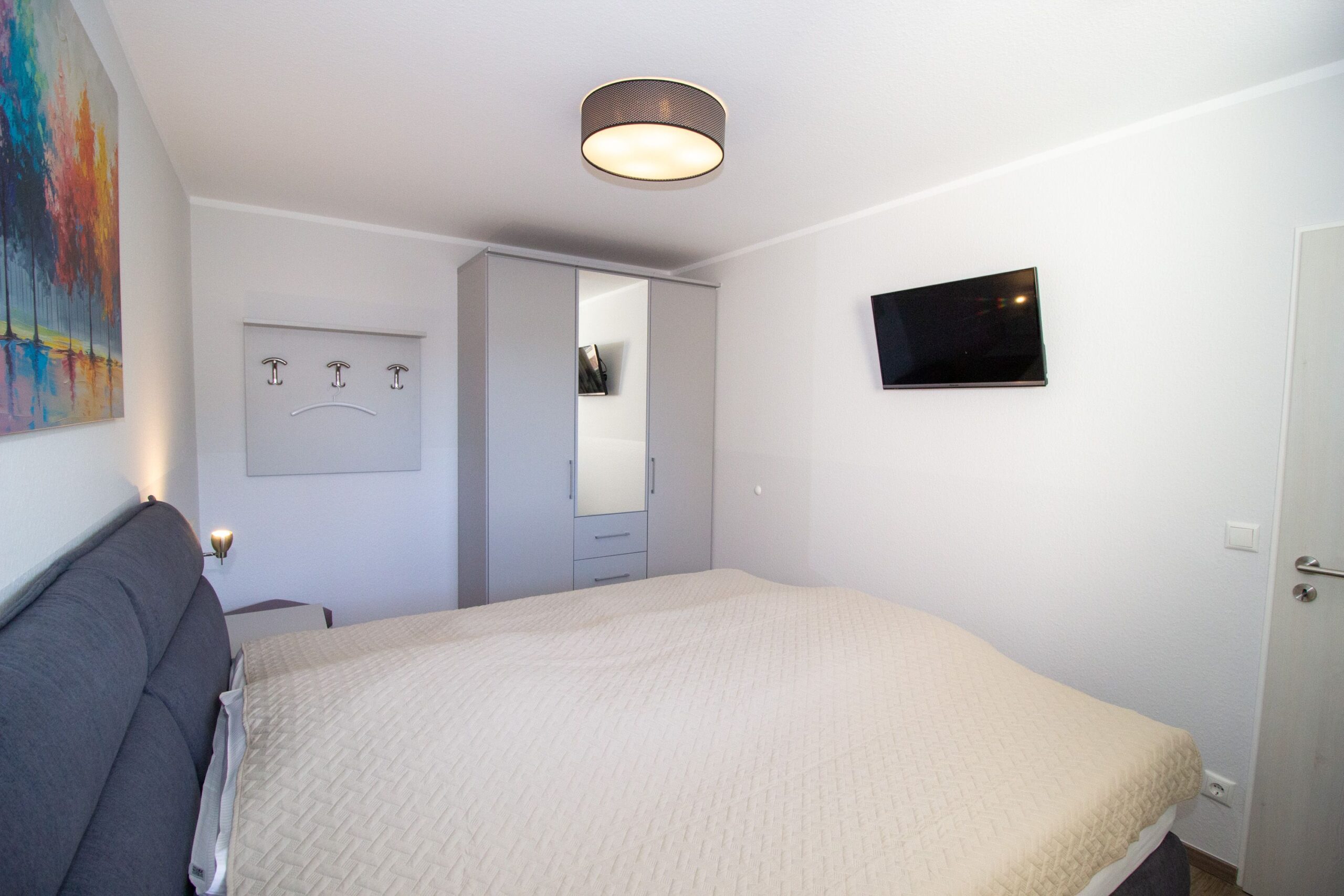 Der Wohnbereich ist sehr großzügig geschnitten und bietet ausreichend Platz für bis zu 4 Personen. Das Zentrum bildet das gemütliche Sofa, das zu geselligen Abenden einlädt. Ein Flatscreen TV mit Internetzugang über den auch Streamingdienste (Netflix, Amazon Prime, WOW, DAZN etc.) mit eigenem Smart-TV-Stick genutzt werden können, WLAN mit eigenem Router, und ein Radio komplettieren die technische Ausstattung.Schlafzimmer