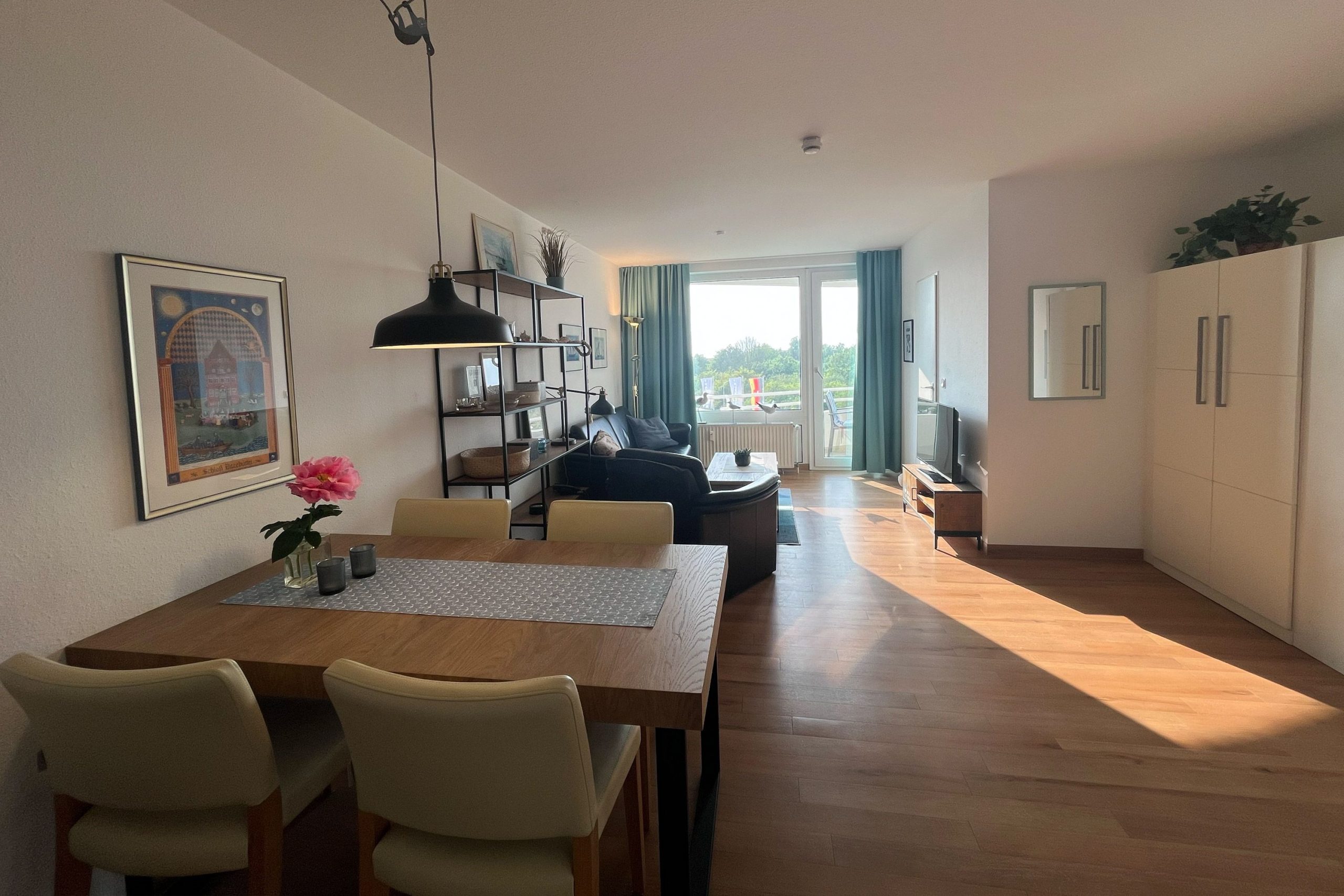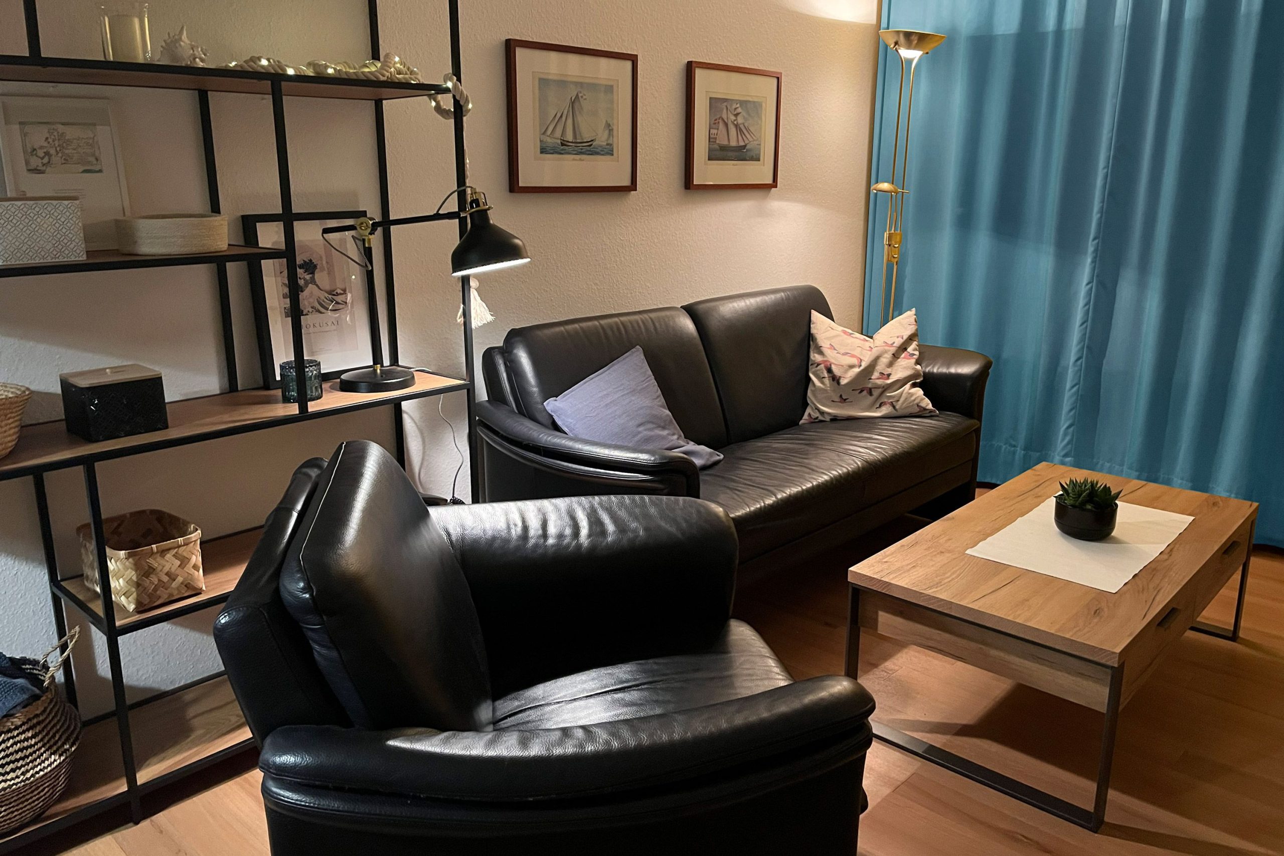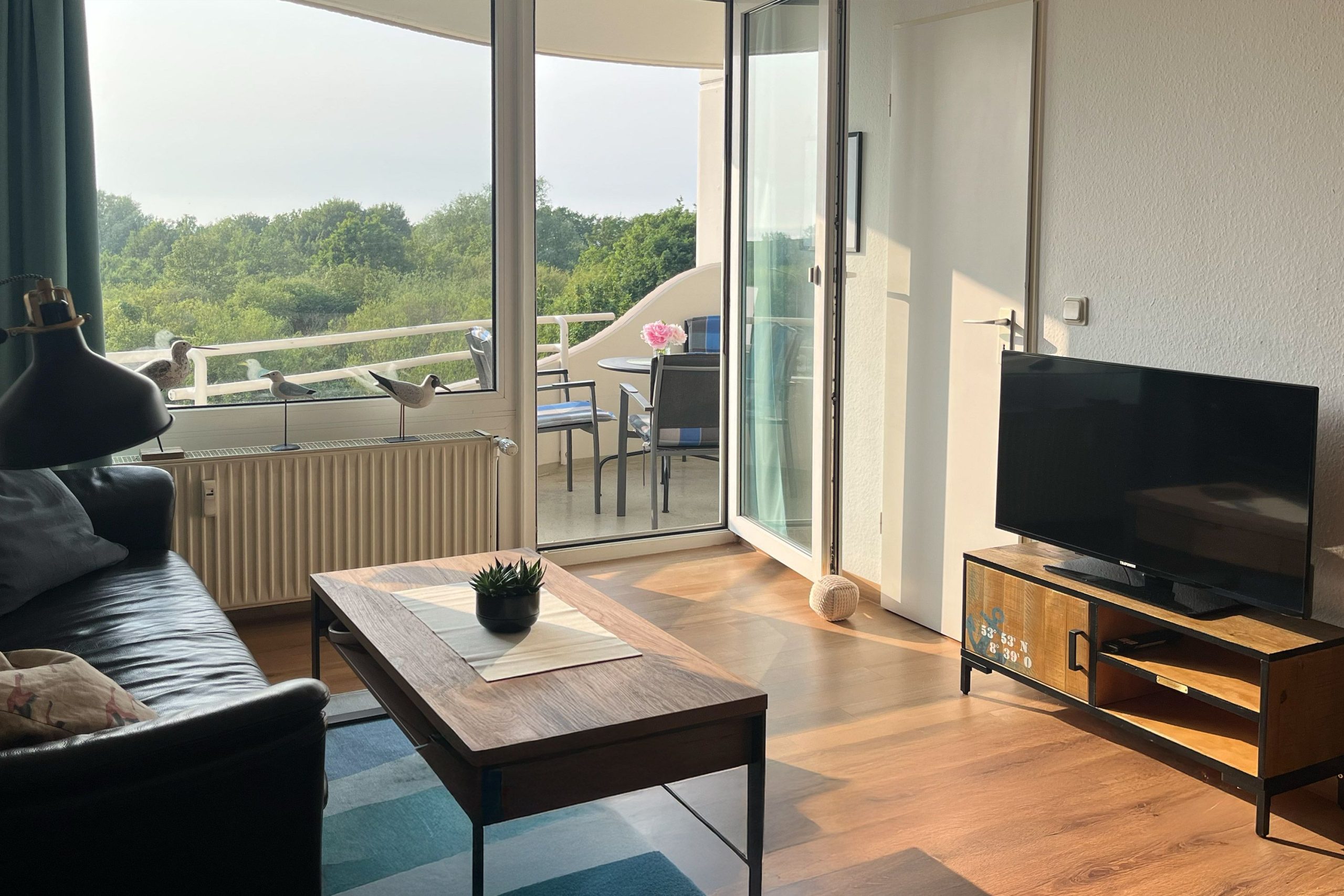 In der 2-Zimmer-Ferienwohnung für 4 Personen genießen Sie Meerblick und die salzige Luft der Nordsee gleichermaßen. Auf dem Balkon der FeWo in Cuxhaven können Sie die letzten Strahlen der untergehenden Abendsonne einfangen. Danach nehmen Sie auf einer edlen Leder-Couch im Wohnbereich Platz. Das ist Urlaub an der Nordsee mit den Cuxhavener Urlaubswelten.