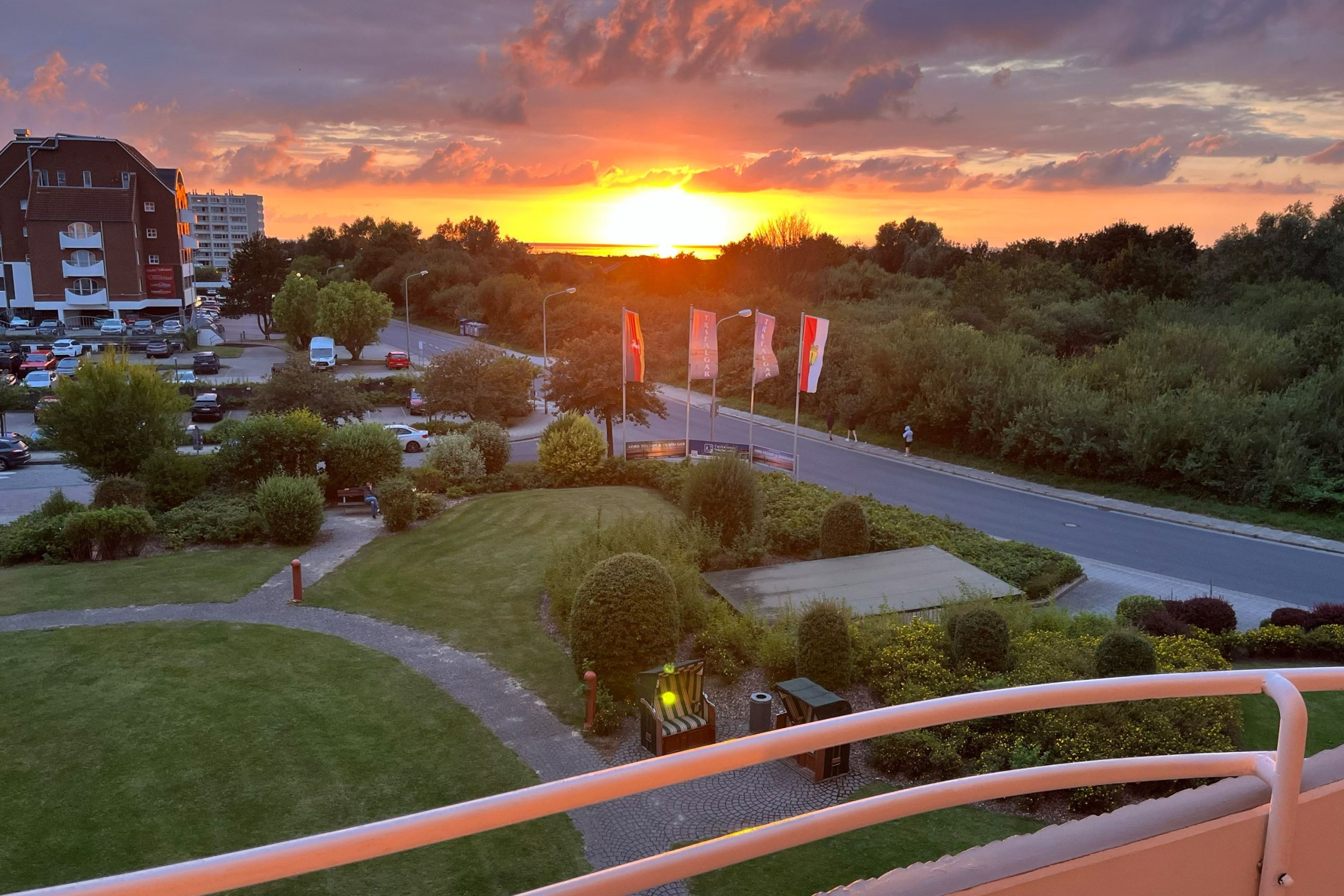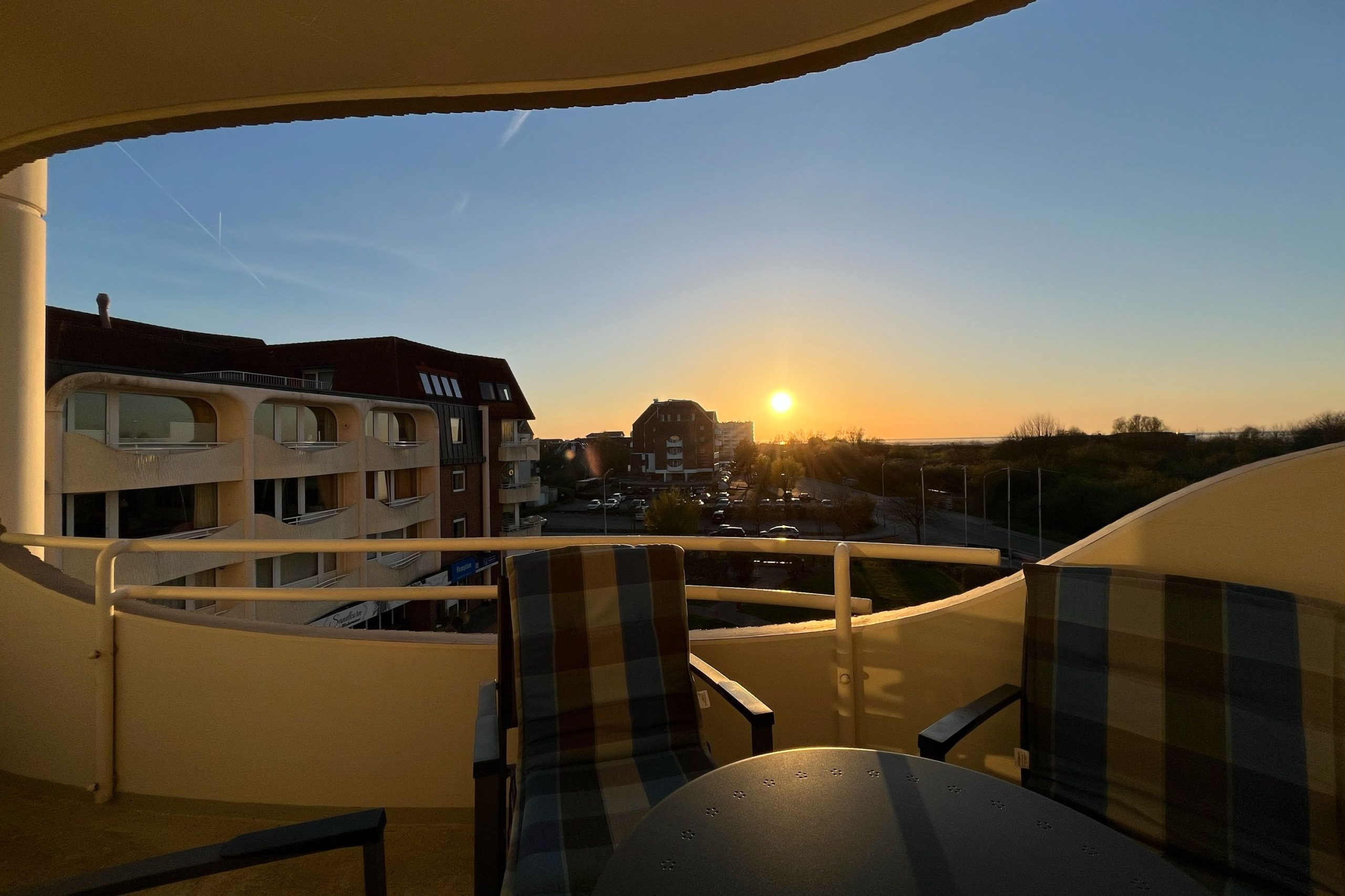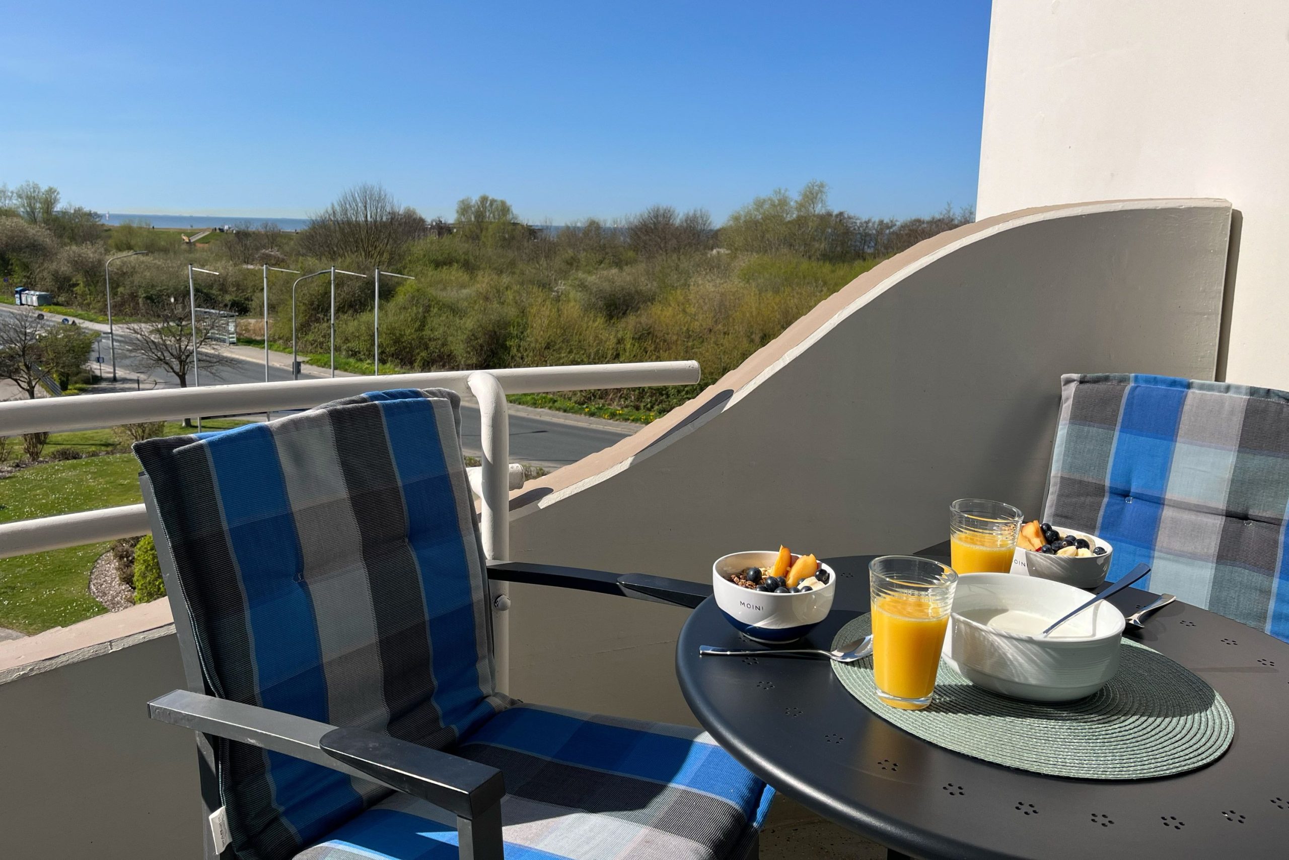 Der Balkon bietet den Blick Richtung Deich/Neuwerk. Hier können Sie schon am Morgen beim Frühstück die salzige Meeresluft genießen.