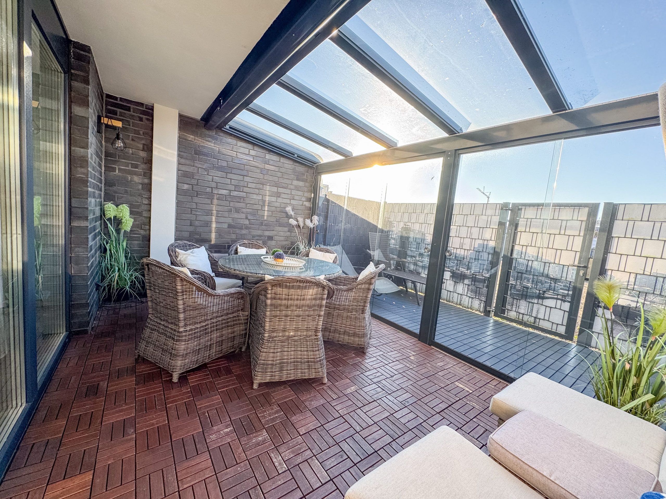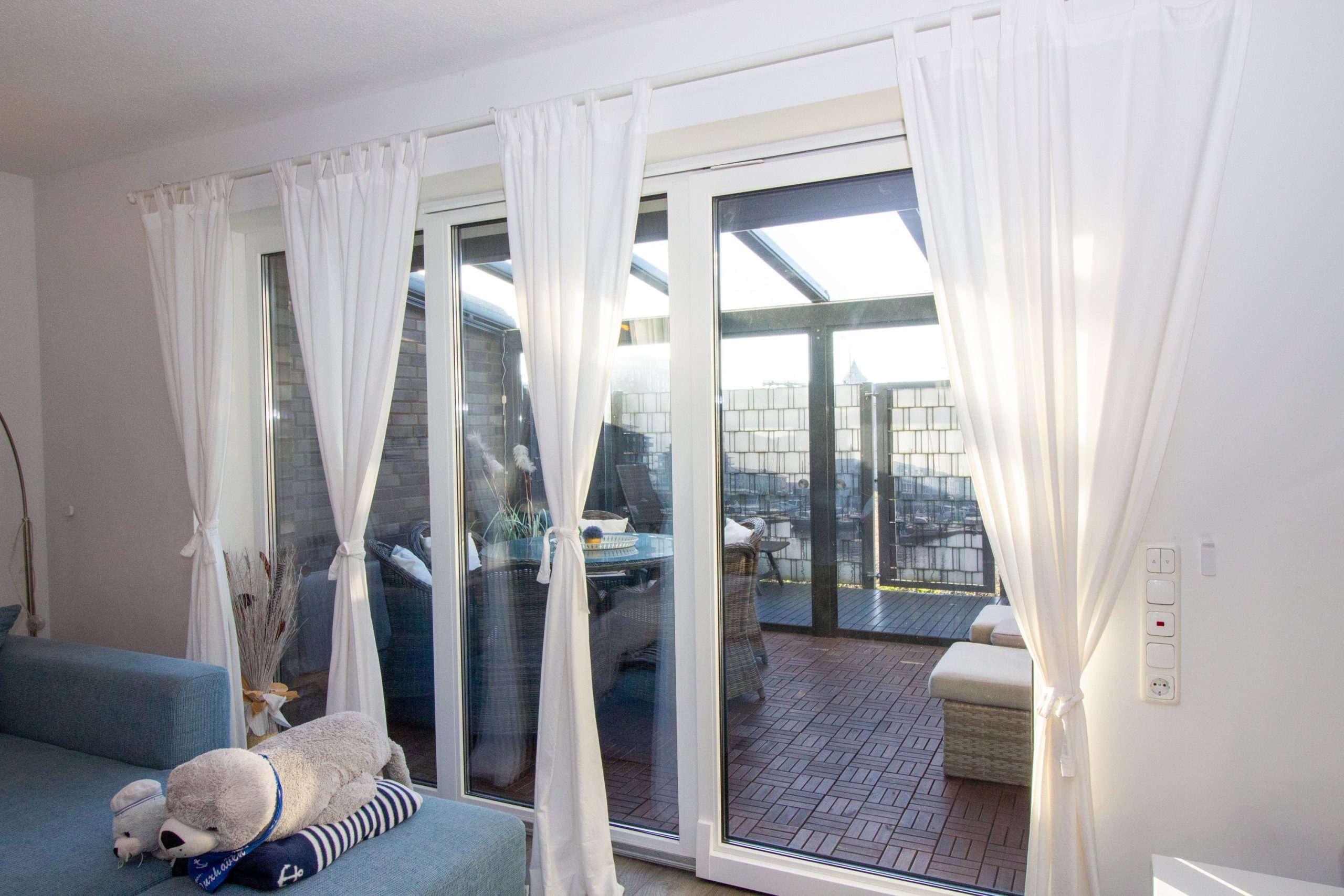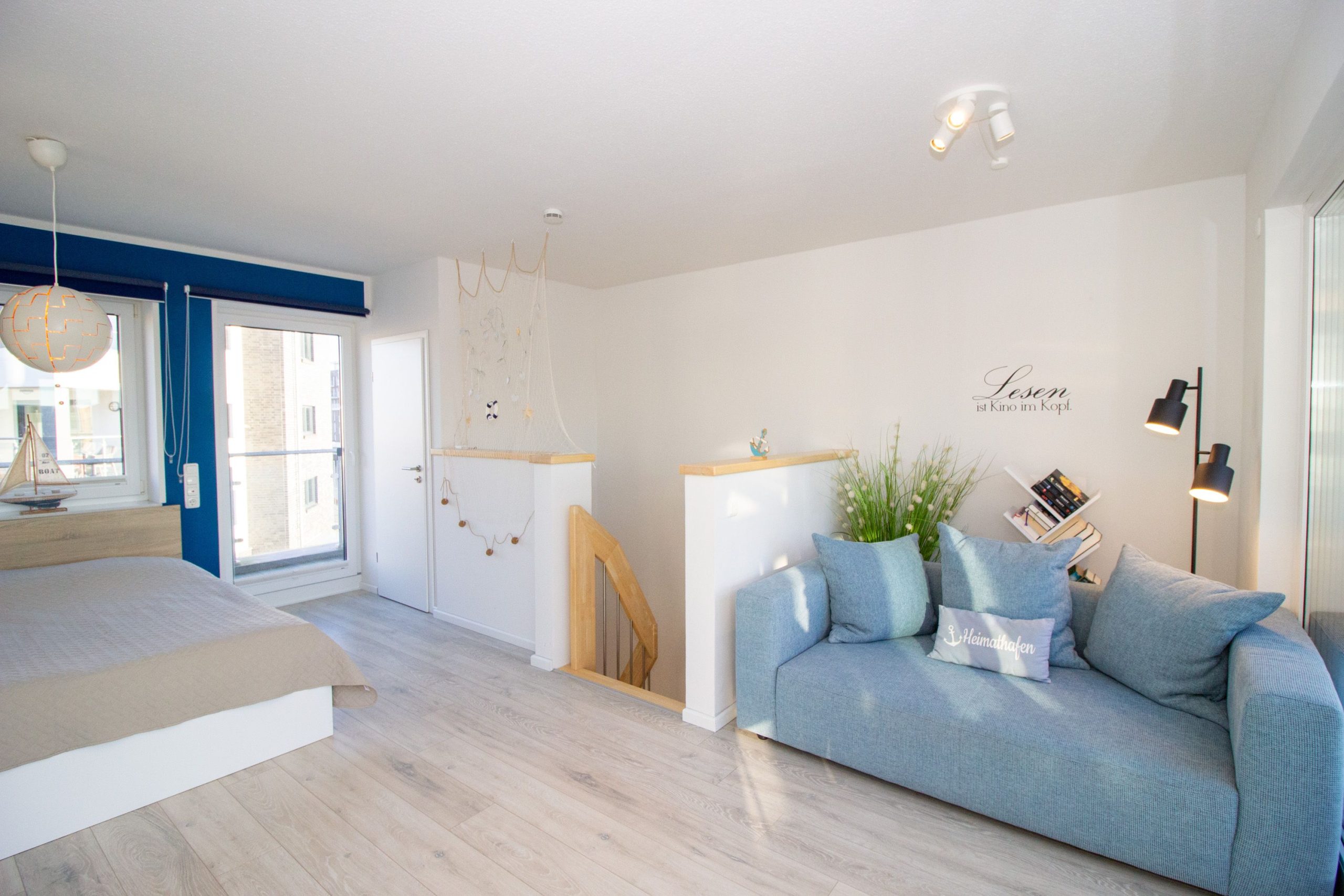 Im 2. OG befinden sich zusätzliche ein gemütlicher Nordbalkon und eine verglaste Loggia Richtung Süden, ausgestattet mit Liegen und einem Kicker zur Entspannung und Unterhaltung.